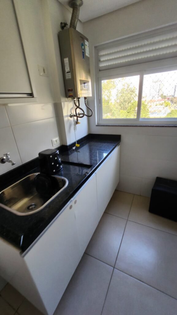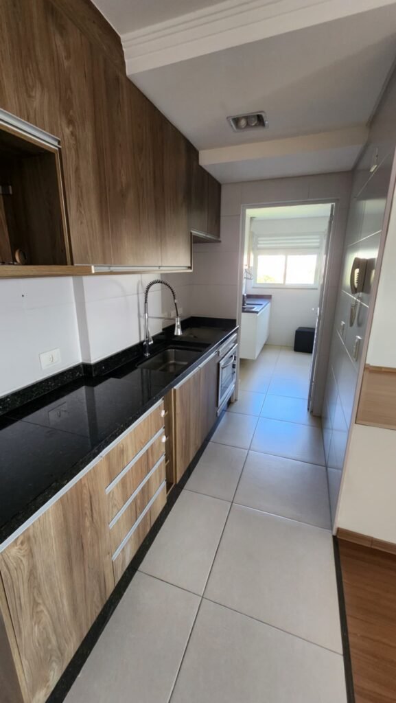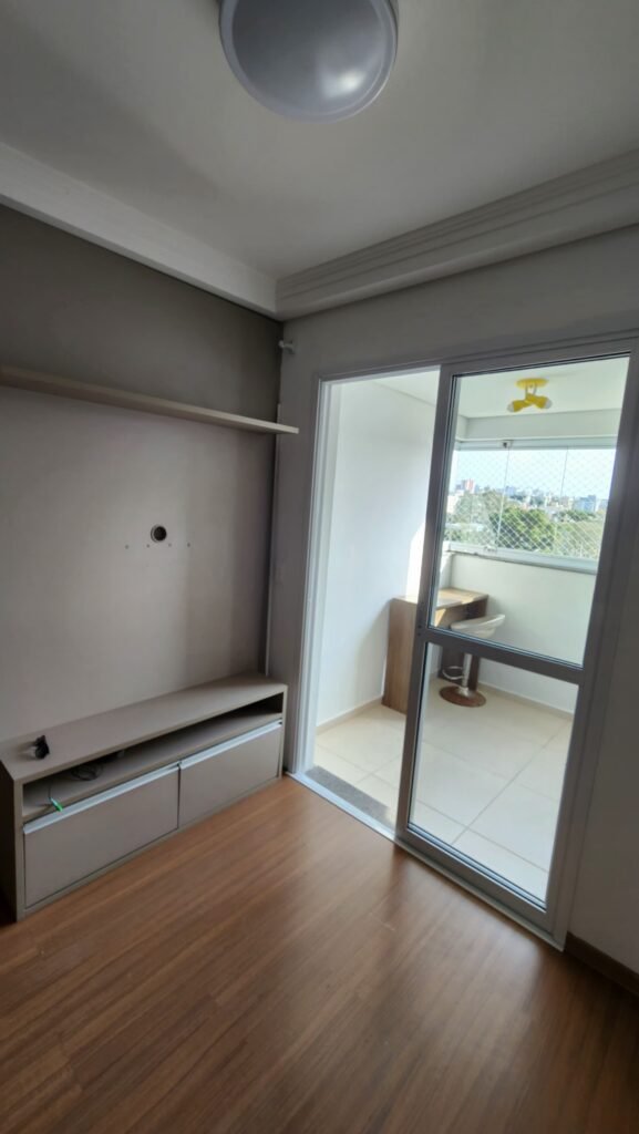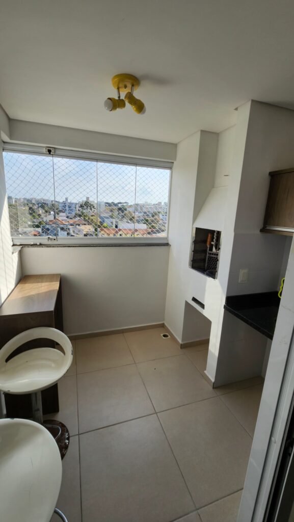 Imóvel composto por 2 dormitórios, sendo 1 suíte, com armários, janelas com venezianas integradas no quarto e suíte, banheiro social com armário e pia em granito, cozinha planejada, ampla área de serviço com armários, sala para dois ambientes, sacada fechada com vidro, equipada com churrasqueira e pia, preparação para aquecimento de água a gás, uma vaga de garagem coberta. Prédio com elevador, espaço para salão de festas e sala de jogos.